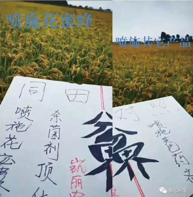 2019年9月15日,我們易生科技售后服務(wù)組來到了遼寧省沈陽市854農(nóng)場(chǎng)觀摩噴施花蜜蜂的水稻效果。同一塊田地,噴施花蜜蜂與噴施其它產(chǎn)品的水稻進(jìn)行對(duì)比,明顯的看出,噴施花蜜蜂的水稻顏色金黃光亮,穗大穗勻,沒有一個(gè)倒伏!而噴施其它產(chǎn)品的水稻大面積幾乎全部倒伏,收割機(jī)都收不起來!